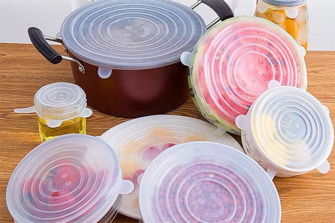 Ovo NISU obični poklopci, već specijalni silikonski poklopci koji se rastežu i prilagođavaju posudama različitih dimenzija. Oni savršeno prijanjaju uz ivice posude i ne dozvoljavaju da hrana pokrivena njima tokom stajanja dolazi u kontakt sa vazduhom i da tako gubi na svežini. Zbog svoje rastegljivosti mogu jednako efikasno da zatvore i ovalne i četvrtaste posude različite veličine: čaše, tegle, šerpe, tiganje, plastične i staklene kutije itd.