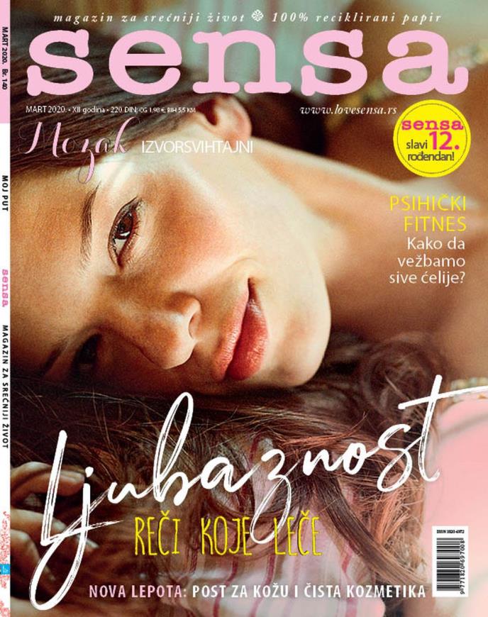 Rođendansko izdanje magazina Sensa podseća na lepotu i snagu reči „hvala, oprosti, molim te...”, predstavljajući i naučne dokaze o važnosti ljubaznosti za psihofizičko zdravlje! Donosimo i priču o treningu budućnosti – tzv. „psihičkom fitnesu”, ali i prednostima geštalt psihoterapije. Za dame će biti interesantna priča o našoj poznatoj voditeljki Milici Gacin i njenom pogledu na godine starosti, život i ulogu žena u njemu.