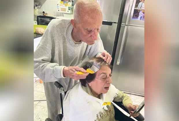 Jael iz Petah Tikve, gradića blizu Tel Aviva, objavio je ovu fotografiju i pored nje napisao sledeće: „Ovo su moji baka i deda. On ima 92 godine. U svakoj situaciji on brine o baki, a i ona o njemu. Ne viđaju se ovakve stvari svaki dan. Ova fotografija je odraz njihove ljubavi. Otkad su u izolaciji, on joj farba kosu, lakira joj nokte...“
