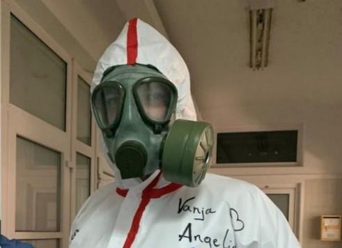 "Ovo je naš tata heroj, koji radi u intenzivnoj nezi i već mesec dana svoju devojčicu gleda samo preko telefona, kad uspe da skine uniformu! Bravo tata najbolji si, izdrži još malo! Vole te tvoje devojčice!", napisala je ponosna žena.