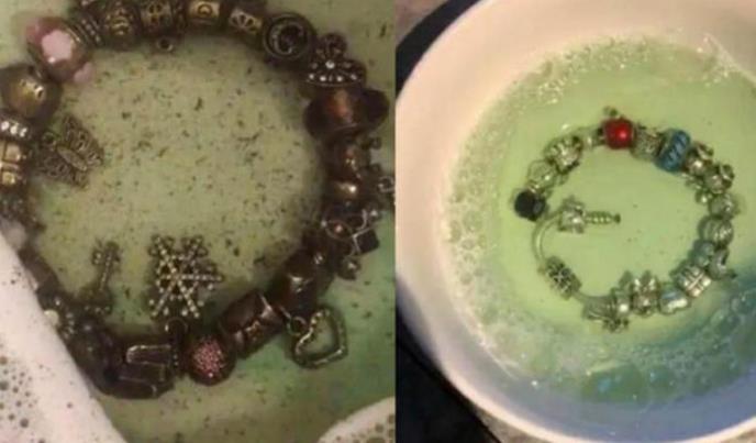 Trik je podelila žena na Fejsbuku koja se zgrozila ugledavši prljavštinu na svojoj srebrnoj narukvici. Sve što treba da uradite je da zagrejete malo vode da proključa, da zatim vodu sipate u posudu u koju ćete dodati malo deterdženta za pranje posuđa. Sve dobro pomešajte, stavite u posudu srebrni nakit pa pustite da odstoji oko pet minuta.