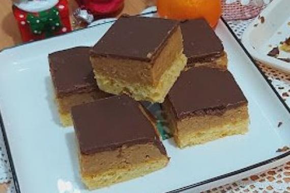 Nadev rasporediti na drugi biskvit i preliti kolač čokoladom. Dobro ohladiti seći na kocke i sladiti se.