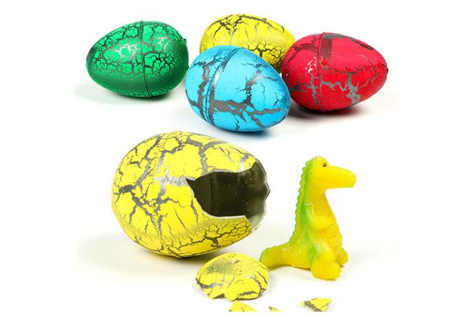 Ovo je jaje koje se drži u vodi i čeka se da samo pukne kako bi se iz njega „izašao“ dinosaurus! Veliko jaje napravljeno je od materijala koji, kada se stavi u vodu, postepeno puca. Pošto će deca hteti da „bace oko“ dokle je stigao proces rađanja njihovog prijatelja dinosaurusa, preporučujemo da vodom napunite neku duboku providnu činiju da ga ne bi non stop vadili iz vode. Kada jaje bude puklo i raspalo se iz njega će da se izleže igračka dinosaurus. Dinosaurusa još neko vreme treba držati u vodi kako bi još malo porastao.