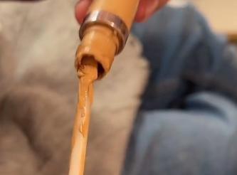 Rešio je problem na najbolji mogući način - uzeo je klešta i njima skinuo plastični vrh i umočio četkicu do kraja. Naravno, bilo je još dosta proizvoda na dnu bočice.