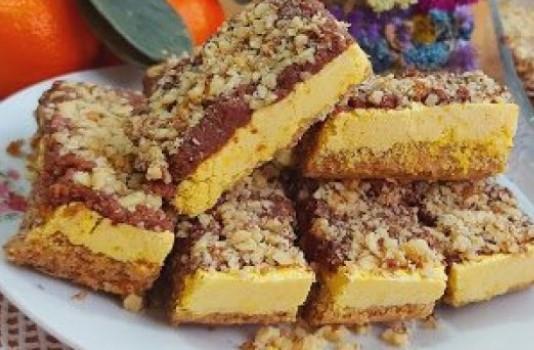 Skuvati mleko dodati šećer ubaciti ćokoladu, maslac i ml. orahe. Kad je kolač pečen rasporediti preko žutog dela kolača