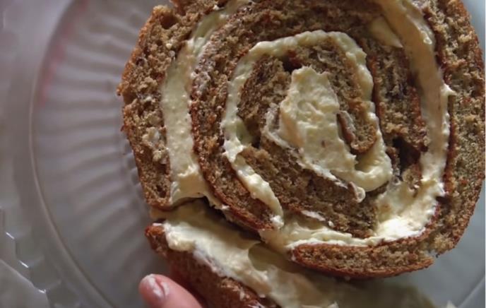Pleh dimenzija 42×30 cm obložite pek papirom i sipajte smesu. Lepo poravnajte i pecite na 200°C nekih 10-12 minuta. Čačkalicom proverite da li je gotovo. Ohlađenu koru podelite na 4 trake jednake širine. Svaku traku premažite filom. Urolajte, ako prvi deo malo pukne popravite filom. Oko urolane trake ređajte ostale filovane trake tako da oblikujete krug. Zatim celu tortu premažite ostatkom fila. Pospite mlevenim orasima ili lešnicima.
