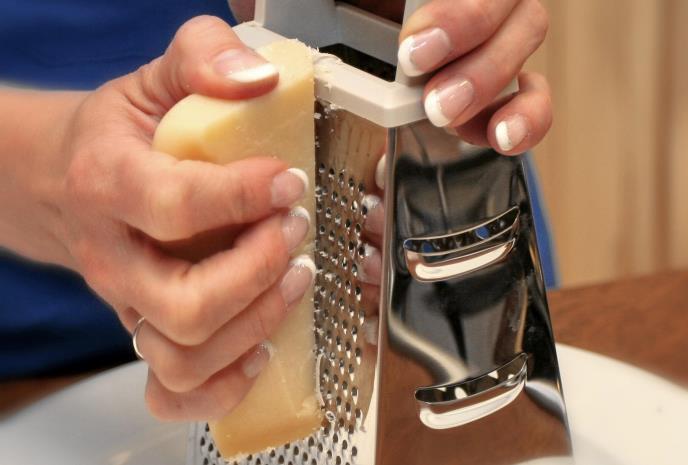 Najvažnija stvar kog ovakvog načina rendanja je da položite kuhinjsko pomagalo vodoravno i čvrsto ga držite. Em što sir pada unutar rendea, em što nema bojazni da će nešto ispasti i završiti gde ne treba. Treba paziti prste svakako, ali je mnogo lakše rendati na ovaj način.