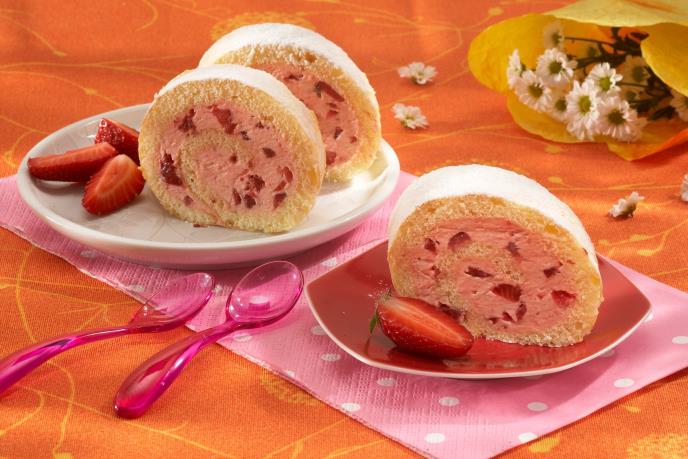 U osnovi ovo je rolat sa malinama. Jedina razlika je što se umesto pekmeza koristi sveže voće i šlag od slatke pavlake.