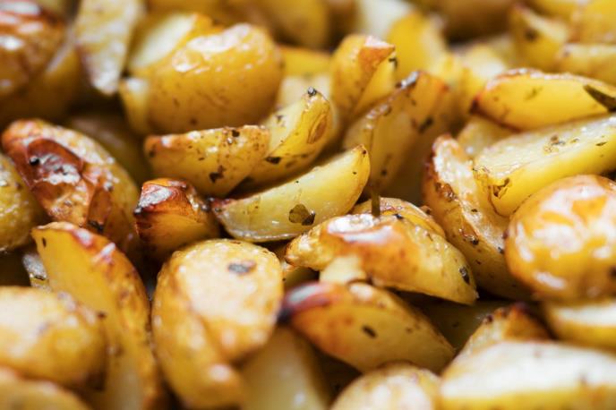 Ostavite da se prosuše, pa ih pomešajte sa 2 kašike ulja (najbolje maslinovog) i začinima po želji - ruzmarinom, bosiljkom, solju, biberom... Prebacite ih u pleh obložen pek papirom i pravac u prethodno zagrejanu rernu!
