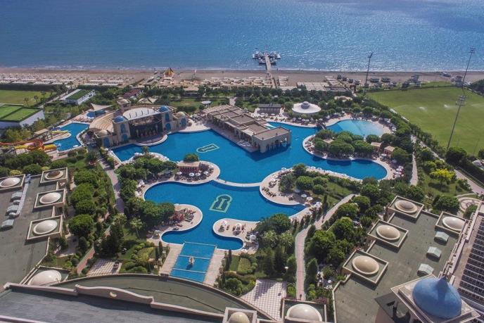Usluga u hotelu je Ultra All Inclusive, po principu samoposluživanja i izbora više jela u glavnom restoranu. Koncept obuhvata glavne obroke – doručak, ručak i večeru, ali i kasni doručak, noćni bife i noćne užine. Osim toga, skoro u svako doba je negde u hotelu, na raspolaganju zanimljiv zalogaj, bilo da je to sladoled ili palačinka, kao i bezalkoholna i alkoholna pića domaće proizvodnje. Pored glavnog restorana, hotel nudi jedan VIP restoran i četiri a la carte restorana (italijanski, turski, azijski i riblji). Tu je i nekoliko barova i jedna poslastičarnica.
