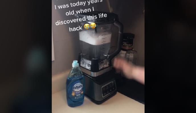U viralnom videu Ejmi je isprala prljavi blender u sudoperu, a potom ga je napunila vrućom vodom u koju je dodala malo deterdženta za pranje posuđa. Upalila je blender kako bi se sam isprao i on je u trenutku izgledao kao nov.