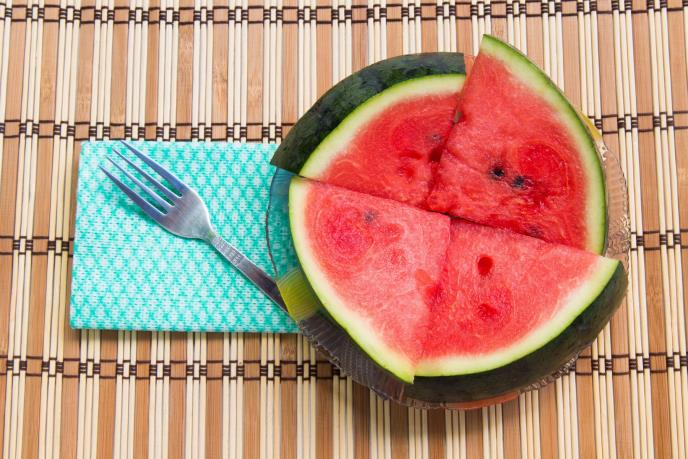 Kada kupujete lubenicu, gledajte da ne bude prevelika, jer što je lubenica veća, to će vam biti teže da baratate sa njom na dasci za sečenje. Takođe, imajte na umu da su lubenice pune vode, pa dasku za sečenje možete staviti na plastični poslužavnik kako biste uhvatili sok koji ispšušta. Na kraju, odaberite dovoljno dugačak nož kako biste mogli lako da presečete celu lubenicu.