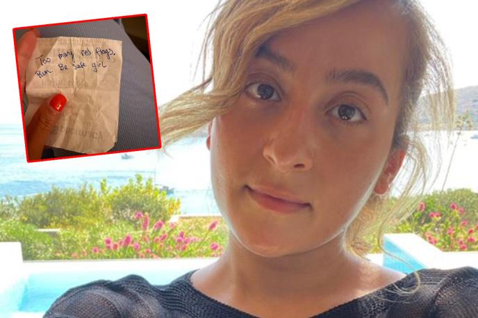 Ona se zove Haida, a svoje iskustvo podelila je na Tviteru. Kaže kako joj je taj neznanac prišao dok je muškarac s kojim je bila na sastaku bio u toaletu i na brzaka joj je u ruku gurnuo papirić. U poruci je pisalo: "Previše crvenih zastavica. Beži. Budi sigurna, devojko".