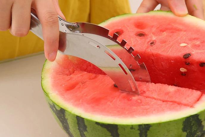 Ovaj sekač vam omogućuje da iseckate lubenicu ili dinju na savršene komade, a da ih pritom ne ugnječite i da ne iscuri sve po podu. Izrađen je od nerđajućeg čelika i njime ne samo da je lakše, već je i bezbednije rukovati nego običnim nožem.