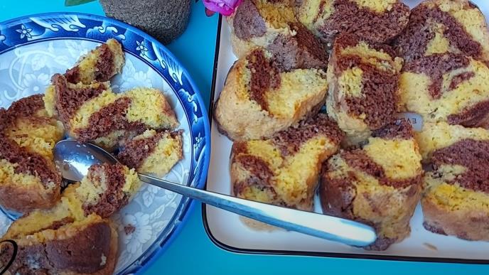 Slagati naizmenično beli pa čokoladni deo.