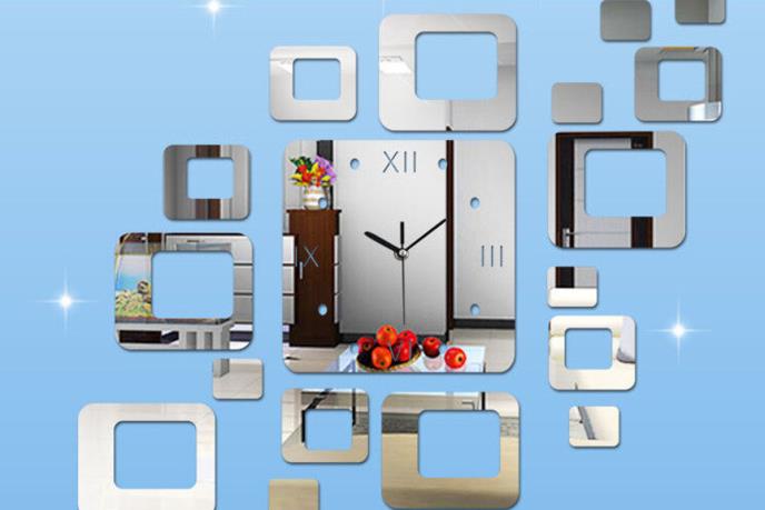 Akrilni samolepljivi zadni sat T4086S je dimenzija 30 cm x 30 cm. Srebrne je boje sa efektom ogledala, a materijal je plastika – akril. Dekoracije su samolepljive i lepe se na zid, a njihova debljina je 1 mm. Centralni deo se kači na ekser i u njega se stavlja baterija od 1,5V AA (koja ne dolazi u paketu).