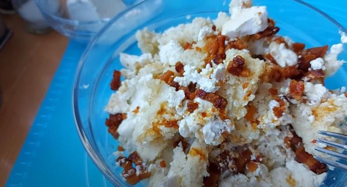 U tigan naseckati slaninu da se istopi onako da krcka reš. Povaditi slaninu pa u masnoću ubacite čvarke da se dobro zagreju pazeći da ne izgore. Skloniti sa šporeta. U činiju na dno staviti malo sira i kajmaka pa pomoću varjače i viljuške skidati kačamak.