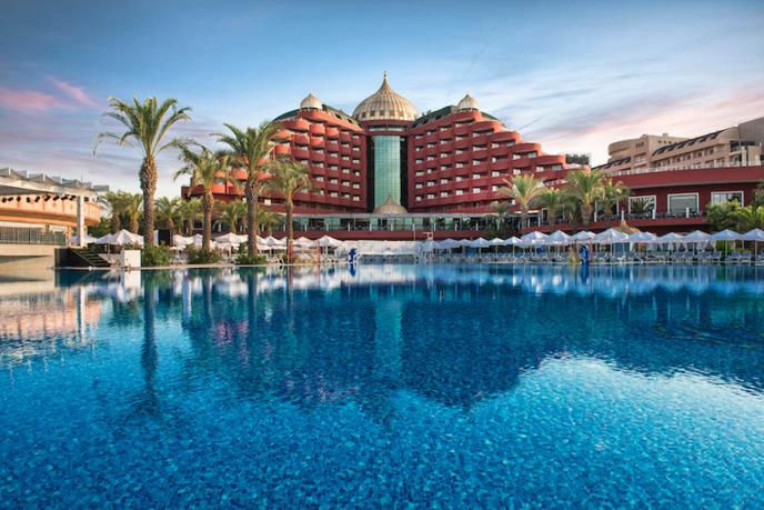 Delphin Palace Resort Hotel 5* nalazi se u Lari, Antalija, na svojoj plaži, svega 15km udaljen od starog grada i oko 10km udaljen od aerodroma. Pored velelepne osmospratne zgrade, sa 487 standardnih soba i još 70 smeštajnih jedinica drugih tipova, hotel čini prostranstvo od 40.000m². Pored standardnih soba, na raspolaganju su porodične sobe, apartmani i sobe za osobe sa invaliditetom.
