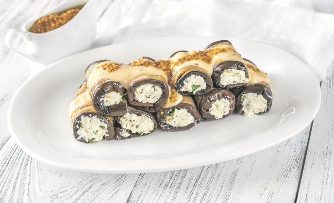 - Dobro sjedinite, pa oblikujte valjak i stavite na krišku patlidžana. Urolajte.