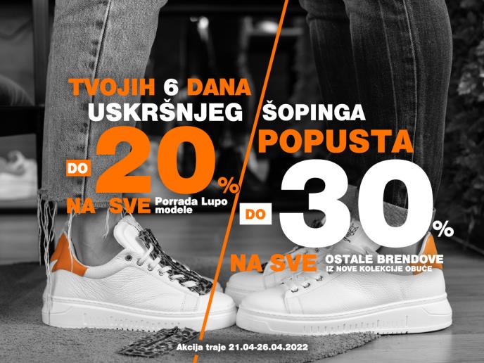 Ovo je prava prilika da obezbedite sebi obuću koju neizmerno želite – kvalitetnu, modernu, dizajniranu sa posebnom pažnjom ka detaljima. Uklapa se u svaki stil oblačenja i pruža komfor pri svakom koraku! Pronađite svoj omiljeni model, iskoristite popuste do 30% i uživajte u Uskršnjoj kupovini!