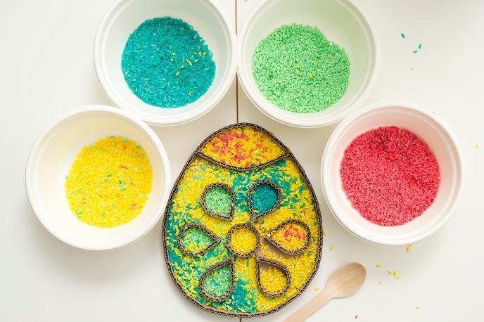 Još jedan originalan način ukrašavanja uskršnjih jaja jesu dekorativne mrvice, perle ili konfete za torte i kolače.