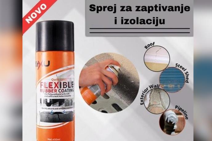 • Guma u spreju je savršeno rešenje za izolaciju i zaptivanje svih vodopropusnih mesta i pukotina. Sa ovim sprejem u samo nekoliko sekundi svako mesto i pukotina postaju savršeno izolovani i potpuno vodootporni.