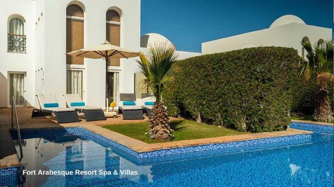 Fort Arabesque The Villas je deo hotela kaskadno orijentisan, nekoliko redova sa vilama koje su povezane bazenom ali tako da svaka ima dovoljno privatnosti. Vila swim up one bedroom je veličine oko 90m2 i sastoji se od dnevnog boravka i spavaće sobe, ima terasu i direktan izlaz na bazen. Vila swim up two bedroom je dupleks veličine oko 90m2 i sastoji se od dve spavaće sobe, dnevnog boravka, dva kupatila.