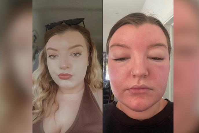 "Kada sam se probudila, pokušala sam da otvorim oči i tada sam shvatila da ne mogu da ih otvorim do kraja. Ostala sam u šoku kada sam se pogledala u ogledalo i videla koliko mi je lice. Udvostručilo se, a od očiju je ostao samo mali otvor kroz koji sam mogla da vidim. Koža mi je bila puna mrlja i crvena, a ruke i vrat puni osipa", rekla je devojka i dodala: