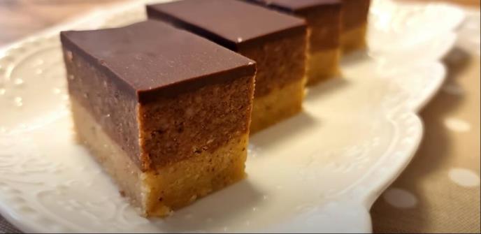 Smesu podeliti na dva dela. Jedan deo ostaje takav kakav je. U drugi deo smese dodati otopljenu čokoladu, pa promešati da se čokolada sjedini sa smesom. Četvrtastu činiju ili pleh staviti najpre smesu bez čokolade i ravnomerno je rasporediti, a preko nje smesu gde ima čokolade i sve to poravnati. Istopiti sastojke za glazuru i preliti preko smese. Staviti u frižider (ili na neko hladno mesto) da se stvrdne.