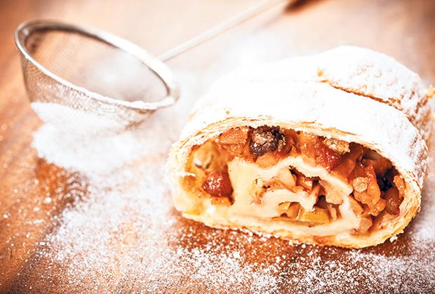 - Kada lepo porumeni i štrudla, ali i njeni krajevi (obično 20 do 30 minuta je potrebno) ona je pečena. Izvadite je i pokrijete da se ohladi kao svako ispečeno testo. Možete da služite štrudlu isečenu sa prah šećerom.