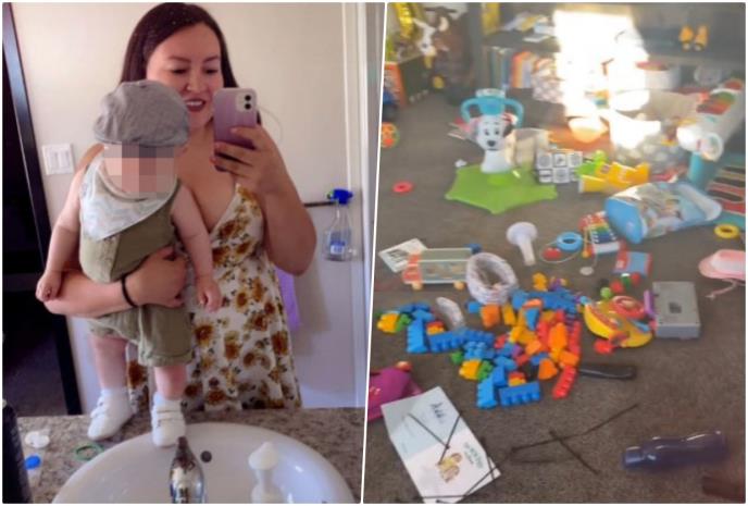 Mlada mama po imenu Del Oger (31) bila je užasnuta nakon što se vratila kući i zatekla haos koji je njena beba napravila dok je bebisiterka spavala na sofi.