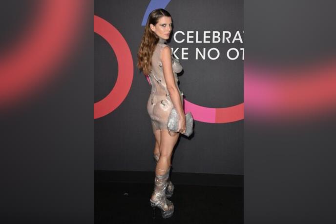 Obukla je kožu, a sličan stil imala je i njena torba. Modni dodatak poprlično velikih dimenzija rad je kanadskog modnog dizajnera Mikaela Kalea.
