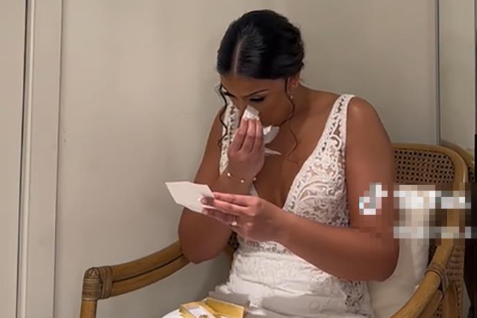 - Za svoje prvorođenče, ovo je spremljeno za tebe, na dan venčanja mene i tvoje majke 2023. Želeo sam da nabavim nešto što će trajati godinama i što ćeš nositi na dan kada kreneš do oltara... - čita mlada na snimku, boreći se sa suzama.