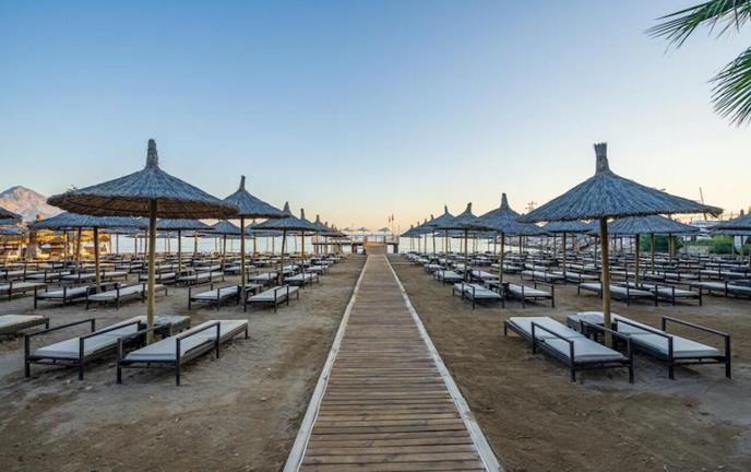 Turkiz Deluxe Resort 5* nalazi se u Kemeru, na svojoj plaži, a od sletanja na aerodrom u Antaliji, deli vas vožnja od 58 km, dok je za posetu centru i obilazak starog grada Antalije potrebno prevaliti nešto manje – 44 km. Hotel je renoviran 2020. godine, plaža je šljunkovita, a korišćenje ležaljki i suncobrana se ne naplaćuje dodatno, već je uključeno u uslugu.