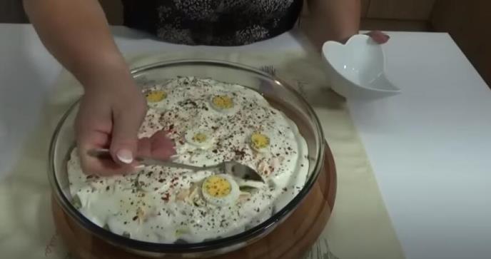 Posle dodajte papriku i patlidžan, so i biber, a onda dodajte i kuvana jaja i preko ostatak smese od šargarepe i grčkog jogurta. Ohladite i poslužite kao obrok salatu.