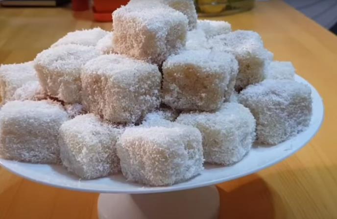 Uzmite pleh dimenzija 29x29cm (može biti i veći, ali će kolač biti tanji). Obložite pleh streč folijom i izlijte smesu. Ostavite da se dobro ohladi, zatim isecite na komade i valjajte u kokos.