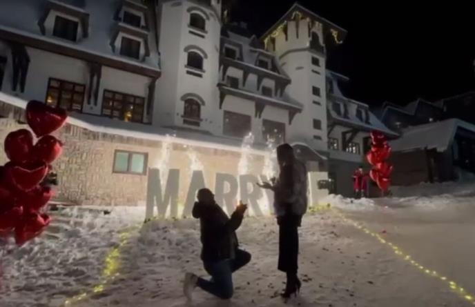 Posetioci Jahorine imali su priliku da prisustvuju romantičnim scenama u blizini jednog hotela gde je organizovana prosidba uz balone i prskalice.