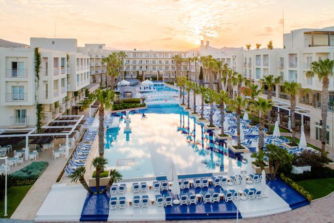 Hotel će vas zasigurno zadiviti svojim prostranstvom, na površini od 22.000 m2, sa bazenima koji dosežu sve do privatne plaže. Među 4 bazena, 5 restorana, isto toliko barova i animacijama tokom dana i večeri, baš svako će pronaći svoje mesto za opuštanje. A kad ste već u Turskoj, upotpunite odmor opuštanjem na turski način, u turskom kupatilu – hamamu, gde ćete duh i telo pripremiti za potpuno uživanje na egejskoj obali.