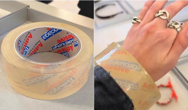- Luksuzna modna kuća Balenciaga ponovo je izazvala debatu sa svojim najnovijim dodatkom, narukvicom dizajniranom da liči na rolnu prozirne trake, zajedno sa logom brenda i velikom cenom od oko 4.000 dolara! Ovo je jednostavno suludo - navodi se uz fotografiju narukvice.