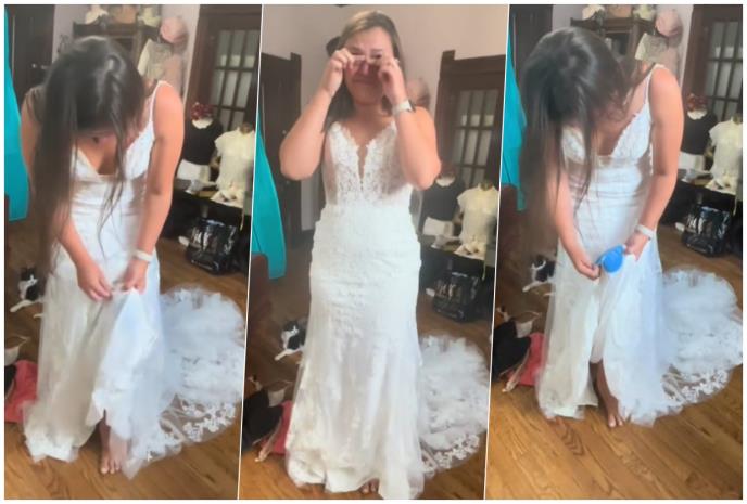 Ova 25-godišnja mlada iz Misurija rekla je da je tokom finalne probe svoje venčanice primetila "nešto plavo na donjem unutrašnjem delu haljine".