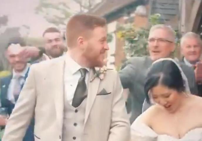 U tom trenutku otac je potapšao mladoženju po ramenu i saopštio mu radosnu vest da Arsenal trenutno vodi sa 3:0 protiv rivala Totenhem Hotspura.