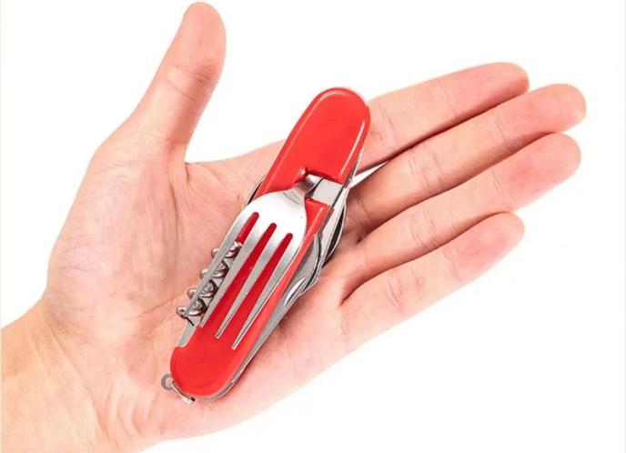 Napredni dizajn ovog noža nudi mnogo više od običnog noža! Sa ugrađenim otvaračem za flaše, otvaračem za konzerve i odvijačem, ovaj multifunkcionalni alat postaje neophodan dodatak vašem priboru za kampovanje, pikniku ili za bilo koju drugu aktivnost na otvorenom. Praktičan je i za svakodnevnu upotrebu u domaćinstvu ili prilikom putovanja.