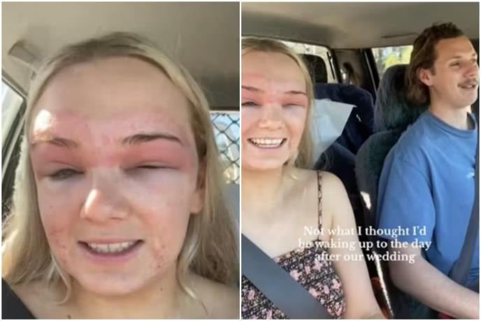 Sledećeg jutra, međutim, došlo je do zaista grubog buđenja: koža mlade žene oko očiju bila je veoma natečena. Lice se sijalo crveno od brade do čela. Šokantan prizor koji je podelila sa svojim pratiocima na TikToku . Dan pre venčanja počela je da pije tablete za alergije. Trebalo bi da ohlade kožu da biste smanjili otok i crvenilo.