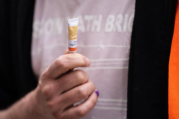 Natopite ga na vatu i lagano pokušajte da utapkate na mesto gde ste zalepili kožu. Budite obazrivi, nemojte na silu da razdvajate prste da ne oštetite kožu i ne naravite ranu. Ako ne uspe pokušajte sledeći trik.