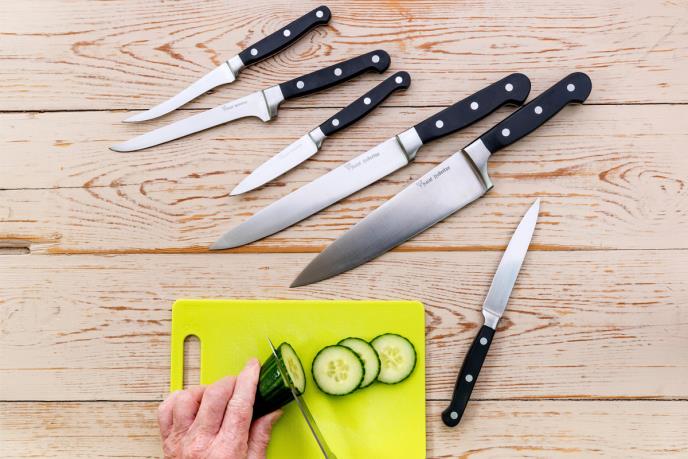 • Mali nož za rezanje (20 cm): Svestrani nož pogodan za precizno sečenje manjih sastojaka ili detaljno sečenje.