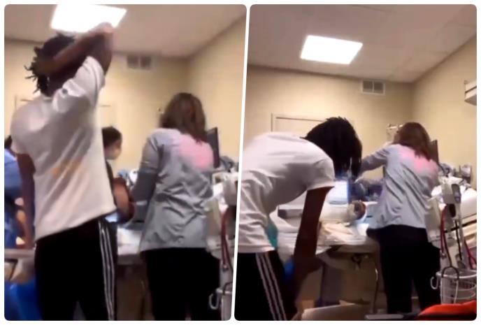 Glavne medicinske sestre su ga samo pogledale i nastavile da rade, a momku kom je ovaj "prizor" očigledno bio previše prišli su drugi medicinski radnici kako bi ga povratili.