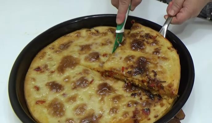 Povrće za fil sitno naseckati i propržiti na ulju. Pre toga zamesite testo od navedenih sastojaka, zatim ga podelite na dva dela.