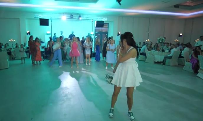 "Kladim se da ovo još niste videli," navela je korisnica društvene mreže TiKTok pa objavila snimak sa svadbe. Naime, na snimku mlada baca bidermajer. Nosi kratku belu haljinu i patike starke, a iza nje su se okupile mnoge devojke. Prema tradiciji, devojka koja uhvati buket, na redu je za udaju.