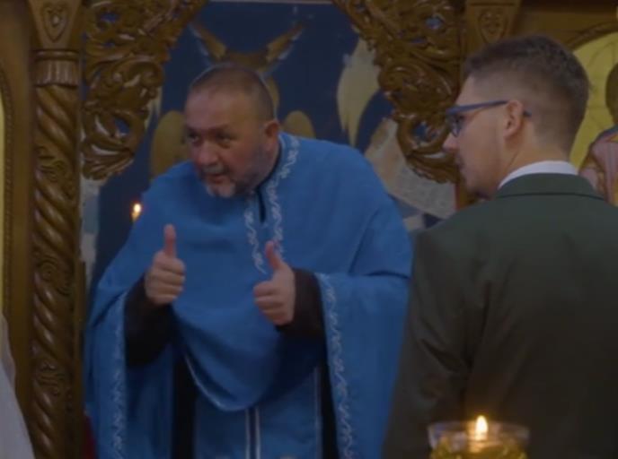 Printscreen/B92 sveštenik se šali sa mladencima nakon ceremonije