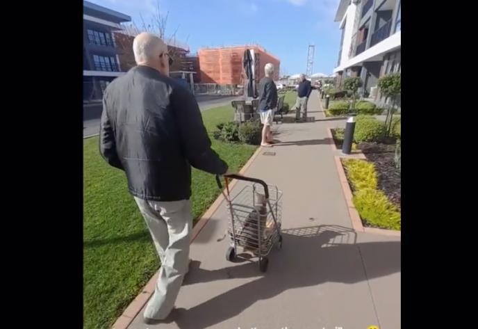 "Svako jutro moj 93-godišnji deda priprema svoja mala kolica za dnevnu šetnju sa starim mačkom Angusom…", napisala je Sara uz video, prikazujući kako se Angus penje u kolica koja je Valter pripremio za njega.